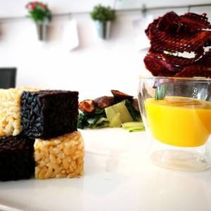 Chiaroscuro: Cubo di riso integrale Carnaroli & riso Venere in salsa agrodolce. Bianco e Nero è il contrasto perfetto. Gli opposti si attraggono, come ci insegna la teoria di Yin e Yang. E uno non potrebbe esistere senza l’altro. La differenza di uno ci fa percepire l’essenza dell’altro.